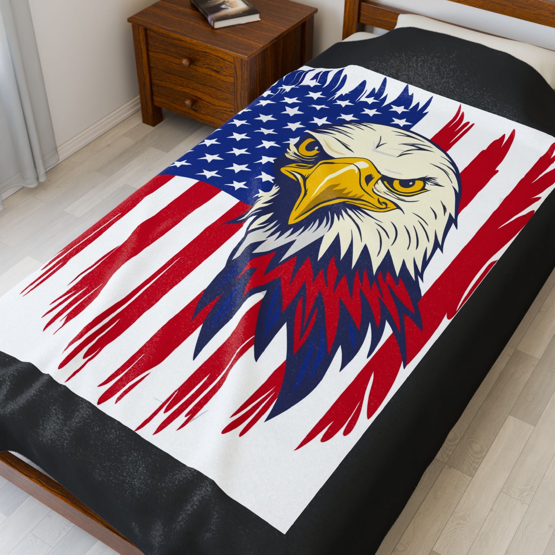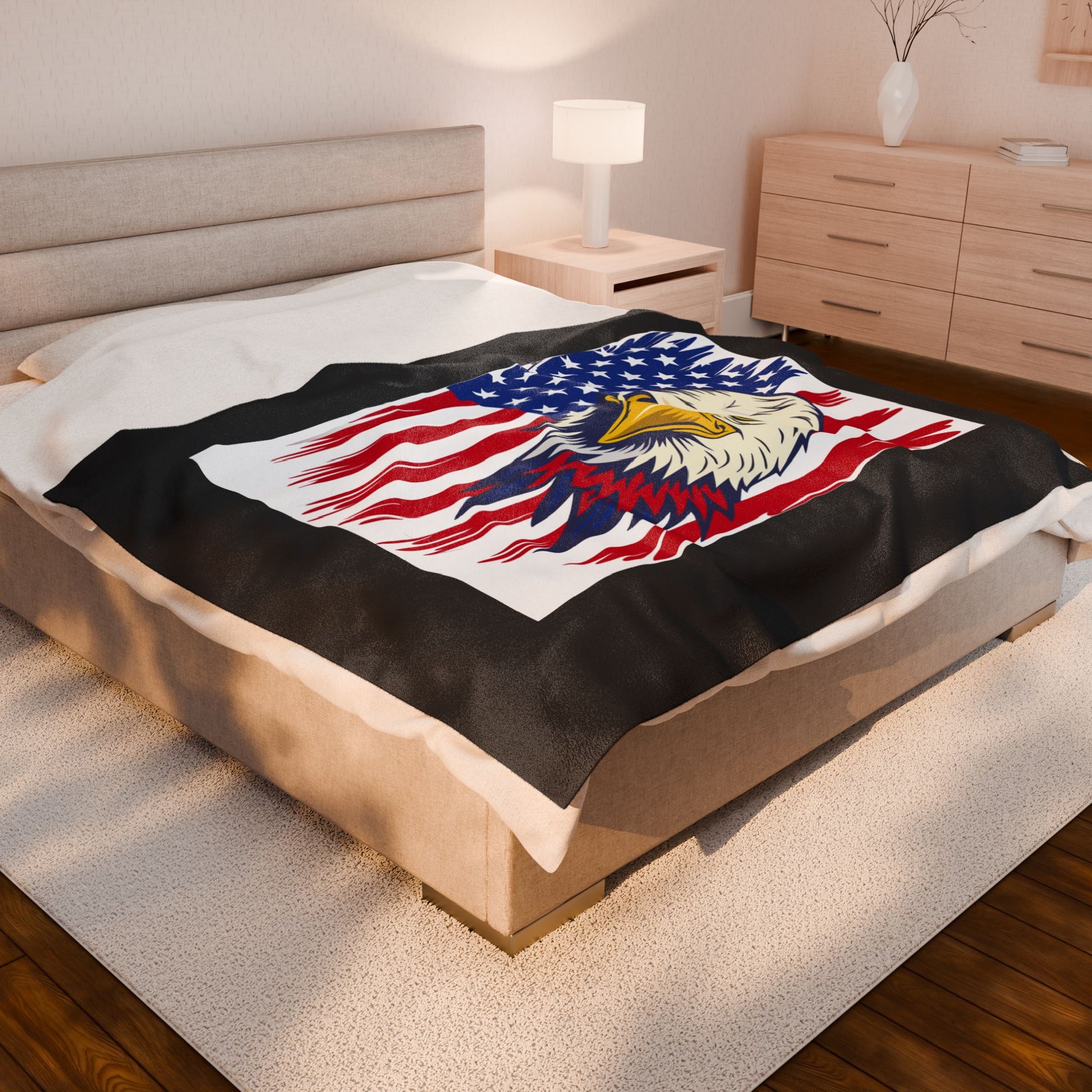 Princess Grace Patriotic Eagle Velveteen Plush Blanket Cozy USA Flag Throw